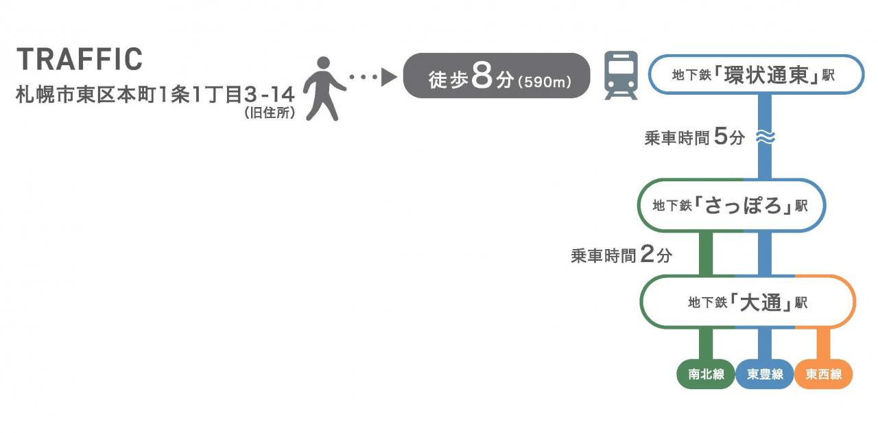 「環状通東」駅から乗車約5分で「さっぽろ」駅へアクセス可能!
