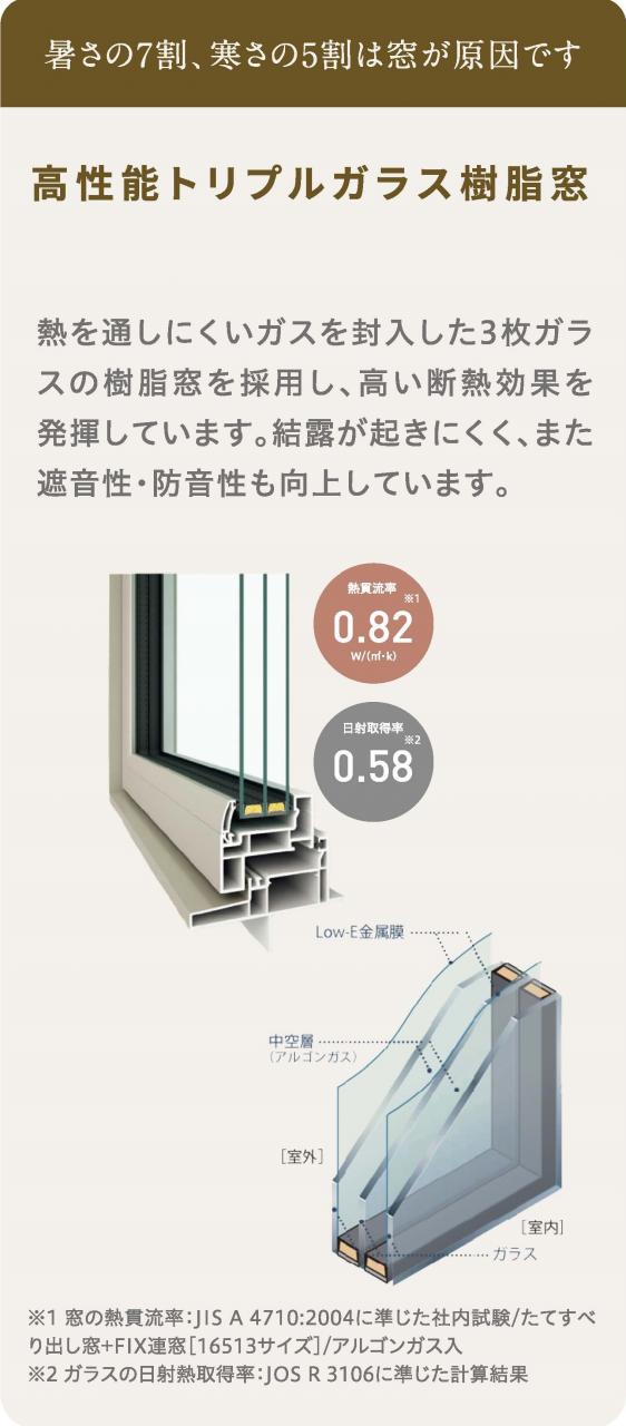 高性能トリプルガラスを採用し、暑さ、寒さを軽減!