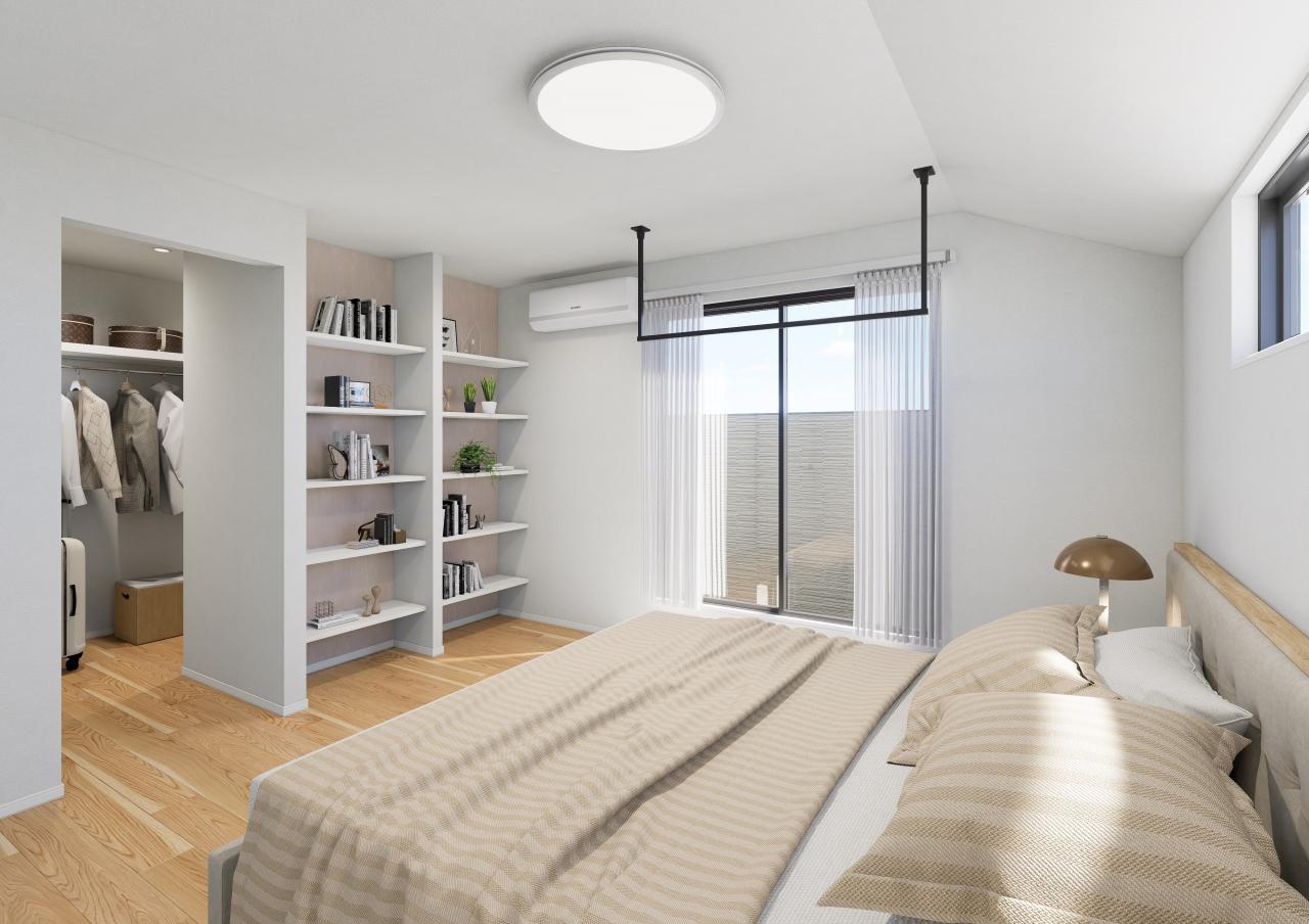 主寝室には時間や天候に左右されない室内干しも可能なスペースを全邸確保。
